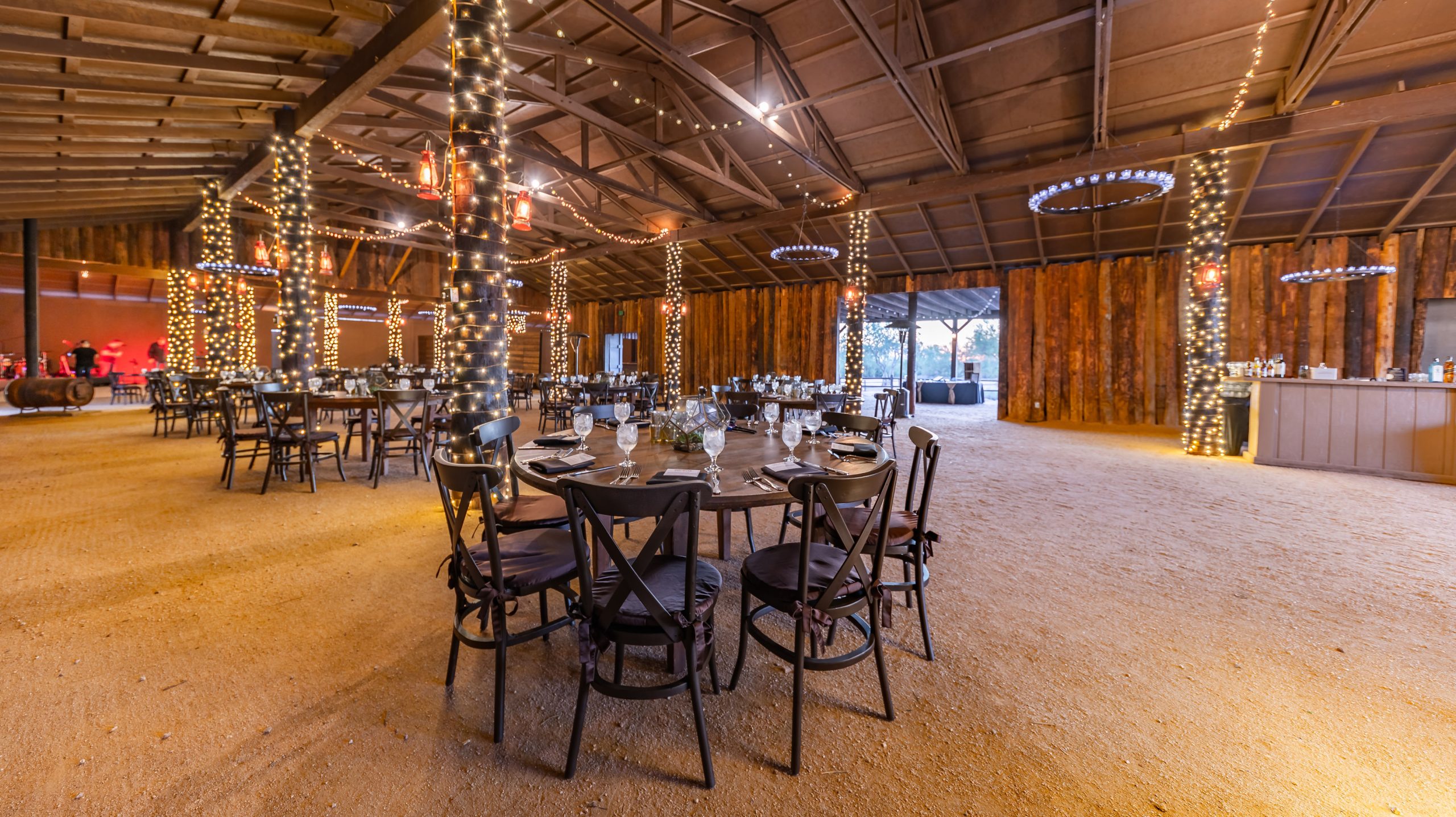 The challenge was to create an experience that blended rustic charm with sophisticated design: cowboy-grilled steaks, Havasupai blankets, and wrought-iron lanterns met silver flatware, mahogany tables, and vibrant teal accents that brought understated elegance to a dirt-floor barn. The result was a space that felt less like a ranch and more like a luxury resort under the stars.